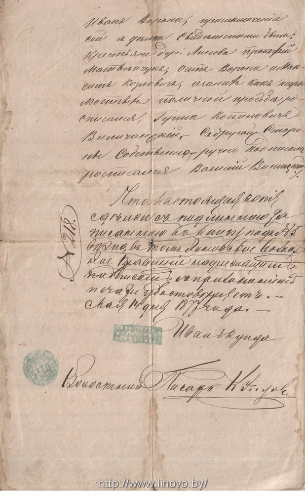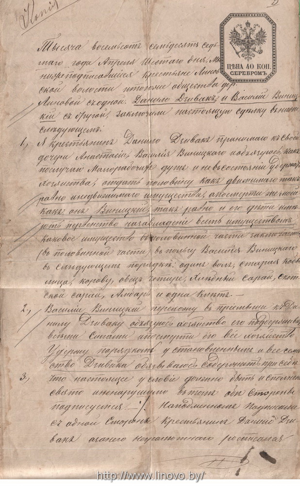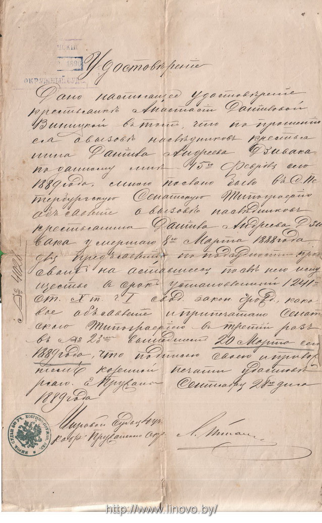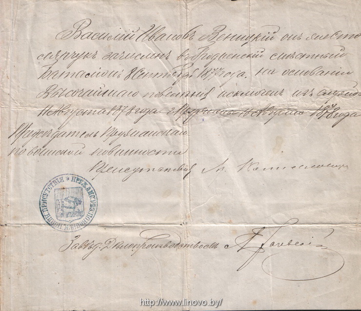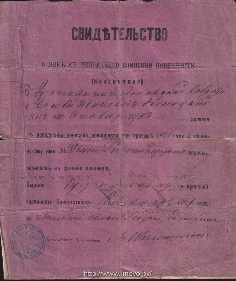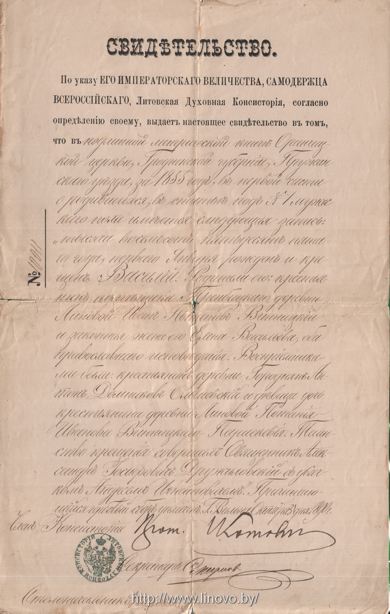 Дакументы Васіля Вініцкага Published 13 снежня, 2015 | By admin Вінніцкі Васіль Іванавіч 1855-?? Пасведчанне аб нараджэнні Пасведчанне аб яўцы да выканання вайсковай павіннасці Абскарджанне пастановы суда Дакумент аб пагадненні