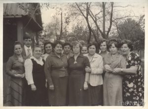 Проводы Макаревич Надежды Петровны на пенсию. Слева направо Торбич (девичья) Валя , а рядом её муж, Кубик Нина (санитарка), на заднем плане молодая врач, затем Зеленяк, Макаревич, Софья Павловна Василюк (патронажная медсестра), через одну Романович (санитарка ), Малашко Лия, Кравчук и Карунас.