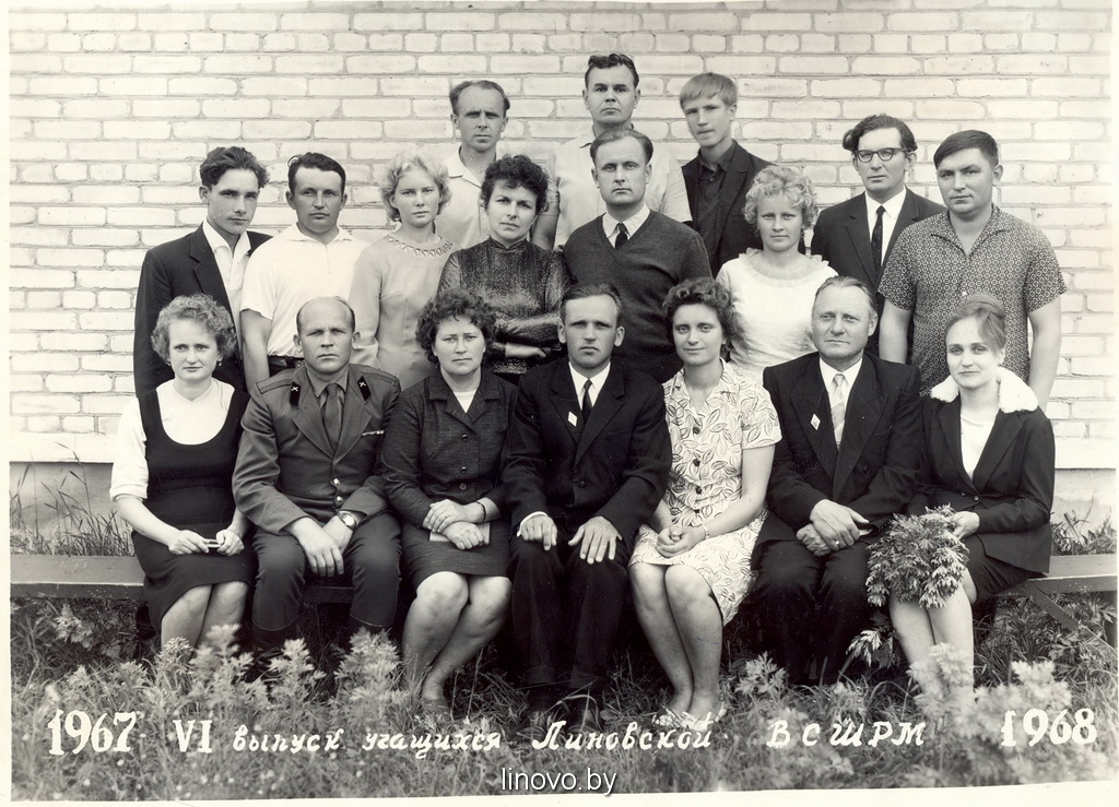 Ліноўская вячэрняя сярэдняя школа рабочай моладзі Published 28 жніўня, 2014 | By admin Ліноўская вячэрняя сярэдняя школа рабочай моладзі была адкрыта ў 1951 годзе. 6-й выпуск навучэнцаў Ліноўскай ВСШ РМ 1967-1968 гг. 9-ты выпуск навучэнцаў Ліноўскай СШ РМ 1970-1971 гг.