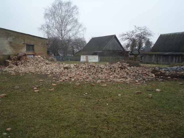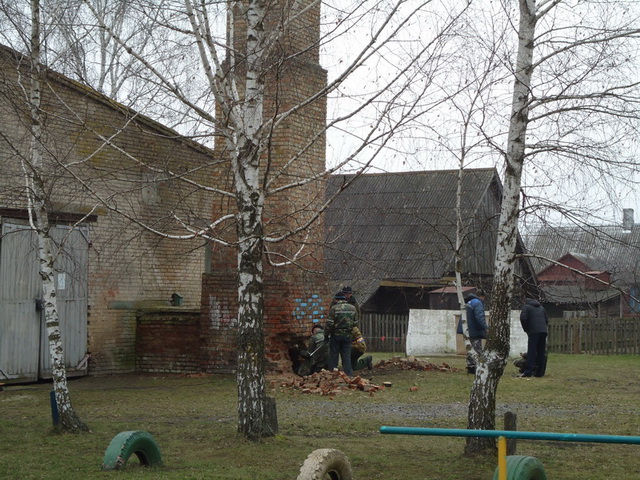 Прыляцеўшы з поўдня школьныя буслы не знайшлі свайго гнязда. Саму трубу былой школьнай кацельні разам з гняздом нядаўна знеслі з прычыны аварыйнага стану.
