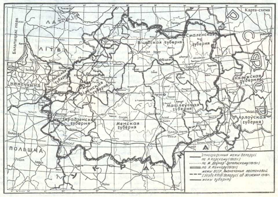 Як бачым, да пачатку савецкага перыяду гісторыі межы пражывання беларусаў былі канчаткова акрэслены і навукова абгрунтаваны. Але, як вядома, з утварэннем БССР яе тэрыторыя была абрэзана з усіх бакоў да памераў адной Мінскай губерні. Нават уз’яднанні 1924 і 1926 гадоў не змаглі ў поўнай меры аб’яднаць усе этнічныя беларускія землі ў складзе рэспублікі. Тэрыторыі з беларускім насельніцтвам на Смаленшчыне адышлі да Расіі, на Чарнігаўшчыне і Піншчыне — да Украіны, на Віленшчыне — да Літвы, на Беласточчыне — да Польшчы. На поўначы многія беларусы аказаліся ў складзе Латвіі. Гэта вялікая гістарычная несправядлівасць. Але гісторыю ўжо, на жаль, не паправіць, яе трэба толькі аб’ектыўна адлюстроўваць.