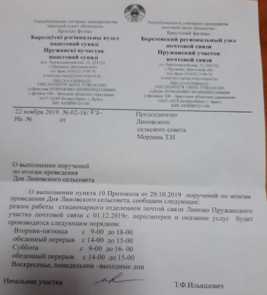 По предписанию Пружанского поветового староства и поветового земельного управления составлялись списки владельцев пустующих земель, кто их использовал. Архивные документы подтверждают, что на четырёх десятинах земли Петра Якимовича (см. гл. «Якимовичи») в 1922 г. хозяйничал Степан Речиц (брат Устиньи Речиц, прабабки), а 10 десятин одного и 9 десятин другого надела невозвращенца Речица Захара (муж Анны, сестры Агафьи Пошвенчук) обрабатывал Казимир Тыминский.